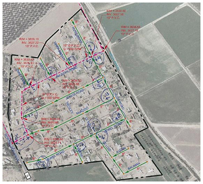 Services included reviewing the available information including reports, as-built plans, drainage reports, and other relevant documents for the project, reviewing the topographic survey performed for the project area by the survey subconsultant, designing an approximately 8-inch diameter, 9,000 feet long gravity sanitary sewer line including manholes, service leads, and connections to the existing sanitary sewer system and coordinating with the utility companies on the utilities to be affected due to the proposed project. GCE developed design details for construction of the waste water collection system. Design details consisted of horizontal and vertical alignment of the sanitary sewer line, details for trenching and backfill, and manholes, details for connecting to existing sewer manholes and utility adjustments along the sanitary sewer line alignment. GCE services also involved preliminary and final design, preparation of construction plans, specifications, and providing construction support services.